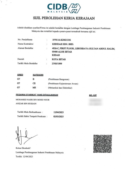 Sijil Kontraktor Kerja Bertaraf Bumiputra