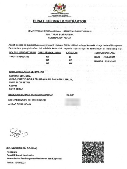Sijil Kontraktor Kerja Bertaraf Bumiputra